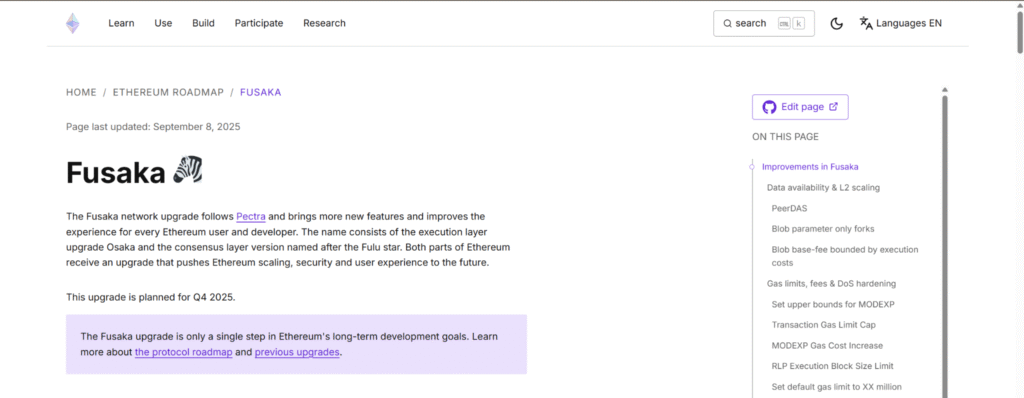 Ethereum’s developers have set their sights on November 2025 for the Fusaka upgrade, a major step that aims to strengthen scalability, efficiency, and user experience across the network.