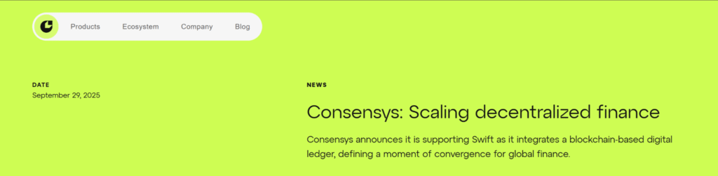 This project, in collaboration with Consensys, signals Swift’s intention to move beyond its traditional messaging role into settlement infrastructure.