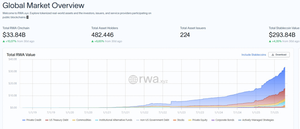 The RWA market recently reached an all-time high of $33.84 billion, reflecting rising demand for on-chain financial products.