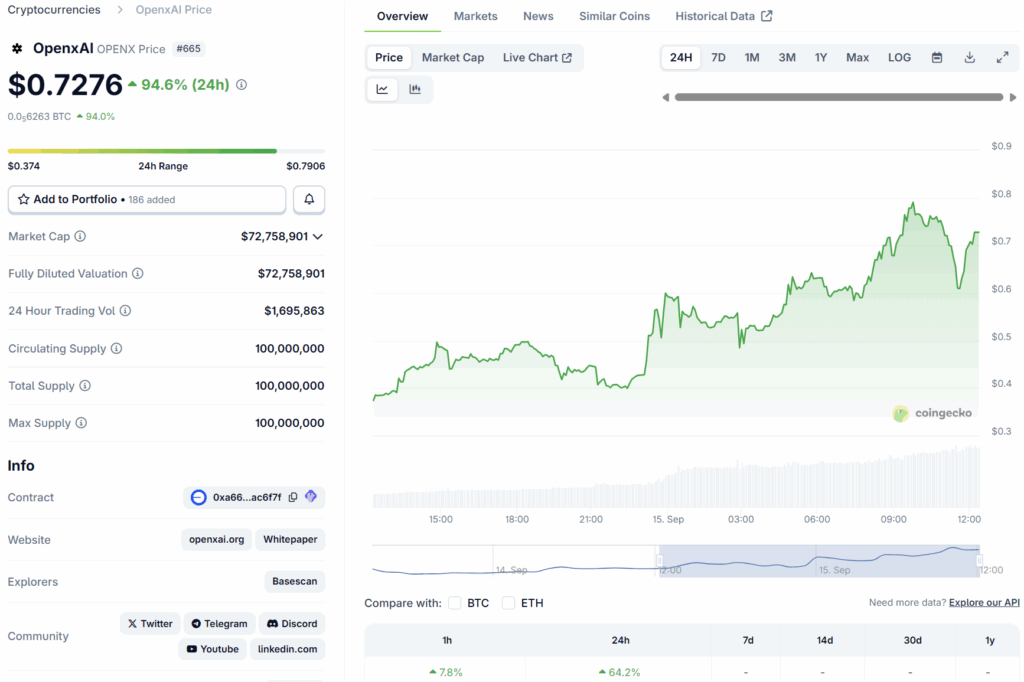 The OpenxAI token has stunned the market with a 100% surge in value in under 24 hours, bringing fresh attention to a project positioning itself at the centre of decentralised artificial intelligence.