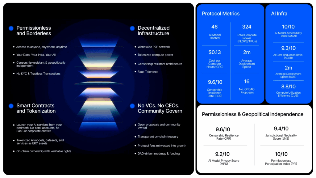 The project’s vision is to create a global economy where intelligence flows as freely as digital money. By eliminating centralised gatekeepers, it offers the opportunity for developers, researchers, and enterprises to access infrastructure, datasets, and AI services on equal terms.